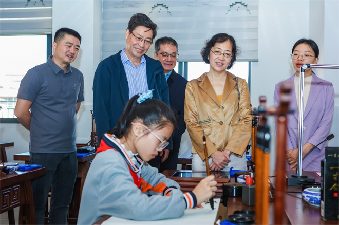 智慧書法教室的建設,是“啟明星計劃”推動教育數字化、智能化的又一探索實踐。智慧書法教室將傳統書法藝術與現代科技設備深度結合,配備智能臨摹平臺、數字字庫、專業教學軟件等設施,為學生提供沉浸式和智能化的書法學習環境,真正實現“寓教于墨、融技于學”。