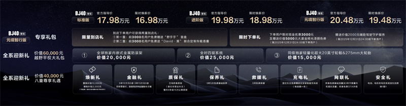 11月13日,國家網球中心·鉆石球場內,北京越野BJ40增程用戶之夜暨新品發布會隆重舉行。BJ40增程元境智行版以20.48萬元的官方指導價正式上市,疊加國補和廠端置換后,限時煥新價僅需19.49萬元。這場發布會不僅帶來了新產品,更展現了一種全新的生活方式——硬派SUV,不越野也行!