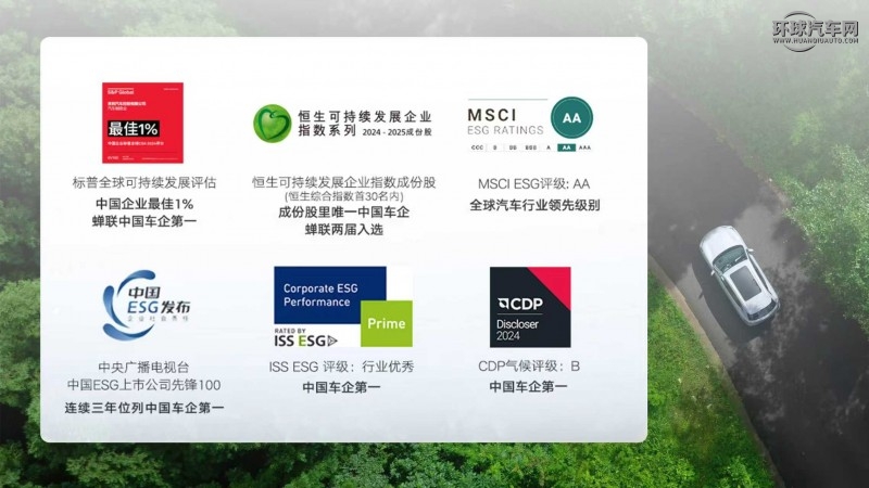 此外,吉利汽車的創新實力與可持續發展實踐一直穩居中國車企ESG標桿地位,贏得了全球權威機構的高度認可:入選“中國ESG上市公司長三角先鋒100(2025)”總榜單第一名、連續三年位列“中國ESG上市公司先鋒100”榜單中國車企第一、連續三年獲《財經》雙碳領導力“卓越”評級、連續兩年入選恒生可持續發展企業指數,還斬獲2025年度財聯社致遠獎“環境友好(E)先鋒企業獎”,國際權威機構MSCI ESG評級AA級,ISS ESG評級行業優秀、中國車企第一等多項殊榮,以亮眼成績彰顯中國汽車品牌的全球影響力。