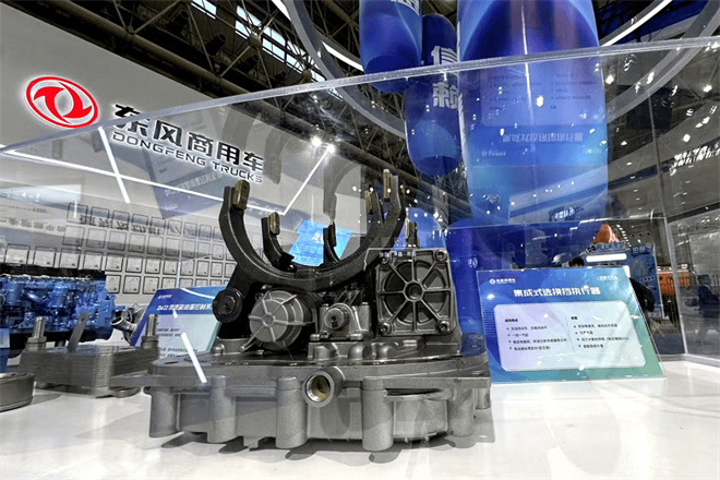 而在追求平順與高效的傳動領(lǐng)域,東風(fēng)展出的集成式選換擋執(zhí)行器同樣彰顯了其精妙的工程設(shè)計。該執(zhí)行器采用高度集成的設(shè)計理念,其結(jié)構(gòu)核心在于將電磁閥、轉(zhuǎn)速位移傳感器等關(guān)鍵元件與操縱零部件(如撥叉)融為一體,并創(chuàng)新性地采用單一氣缸直接驅(qū)動換擋動作,實現(xiàn)了結(jié)構(gòu)的極致精簡。正是這種高度集成的物理結(jié)構(gòu),為其帶來了卓越的性能表現(xiàn):它不僅實現(xiàn)了極高的控制精度與迅捷的換擋響應(yīng),更將每次換擋的動力中斷時間顯著縮短(響應(yīng)時間優(yōu)化達0.1秒),從而確保了動力輸出的連貫性與駕駛的平順性。此外,一體化的設(shè)計也大幅提升了單元的可靠性,并為整車的裝配與后期檢修維護帶來了極大的便利。