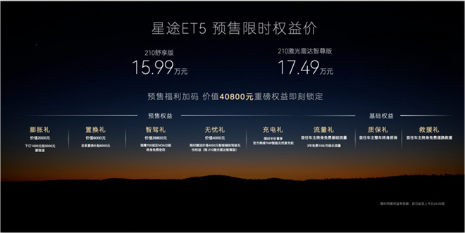 新車預售期間,共推出210舒享版與210激光雷達智尊版兩個版型,預售價分別為15.99萬元與17.49萬元,并推出總價值40800元的加碼福利,包括定金膨脹、置換補貼、智駕功能終身免費等,進一步強化其市場競爭力。