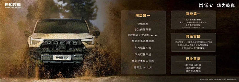 “越野改裝玩家”,智野再添猛將。11月21日,猛士汽車與華為乾崑聯手打造的豪華智能越野SUV猛士M817家族新成員——猛士M817 Hero版正式上市,官方指導價30.19萬元,12月31日前下定,即可享受價值48,800元的限時購車權益及四大基礎無憂權益,為越野愛好者帶來“野得安心、改得盡興”的硬核之選。
