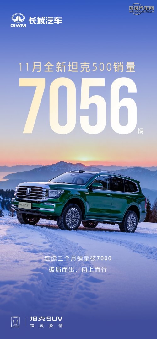 在30萬元以上越野SUV這個曾由外資品牌主導的細分市場,一個來自中國的名字正在書寫新的傳奇。全新坦克500在11月實現銷量7056輛,連續三個月銷量突破7000輛。這一里程碑式的成績,不僅標志著全新坦克500已穩固占據該細分市場的領導地位,更向整個行業揭示了一個顛撲不破的真理——在當前汽車消費市場,唯有真正實現“全場景全能”的產品,才能贏得最廣泛用戶的選擇。