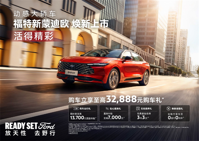 福特新蒙迪歐,承襲福特與生俱來的性能基因,將“放天性,去野行”的品牌精神融入日常出行的每一刻,現(xiàn)以「四大」「精鋼」全能實(shí)力煥新登場,精準(zhǔn)呼應(yīng)都市精英對駕控、性能與悅己的多元向往。它不止于出行工具,更是一種生活態(tài)度的鮮明表達(dá),陪伴用戶在都市與遠(yuǎn)方之間自由穿行,釋放真我天性,為精彩生活注入全新動能!