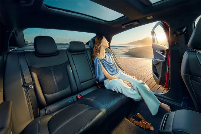 福特新蒙迪歐以近5米車長與2945mm軸距打造出二排近1米的“大五座”腿部空間,配合0.94㎡超大全景天窗、丹麥B&O音響與吸入式座椅通風(fēng)加熱系統(tǒng),營造出移動的“豪華大平層”。后排座椅支持多擋位調(diào)節(jié)與放倒,后備箱空間可在520L至1550L之間自由切換,滿足家庭出行與休閑旅行的多元需求。