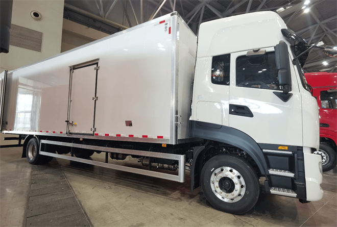 根據長途運輸場景需求,其采用2460mm寬體四點懸浮駕駛室,高頂雙臥,臥鋪寬度達900mm,滿足司機在車內長期工作休息的空間需求。另外,后橋采用復合空氣懸架(鋼板+氣囊),兼顧減振和重載需求。在惡劣復雜道路工況下可以減少對貨物的損傷,這也是高端冷鏈貨品運輸的必要配置。在貨廂上,采用東風專汽生產的輕量化高強度保溫箱,預埋鋼骨架+氣流導軌與板材整體發泡結構,地板承載強度高,能夠使用叉車裝卸貨物,可以防止側圍脹箱。