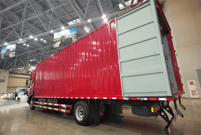 這款車型可提供7150/5800/5000mm三種軸距選擇,貨廂長度從6.8米到9.6米,涵蓋倉欄、平板、廂式、翼展、冷藏等類型,除快遞之外,還可以滿足城市配送、冷鏈運輸、散雜運輸等場景需求,是電動中卡運輸領域的多面手。