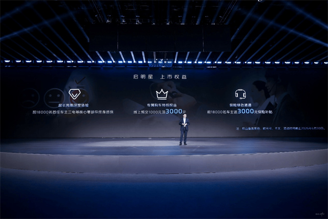 價格方面,啟明星二級踏步車型提供標頂、高頂雙版本,電池覆蓋100-165度規(guī)格,搭載2C超充技術與三種碳化硅油冷高效電機,上市價16.88萬元起;啟明星一級踏步低入口車型入口高度僅470mm,配合1.88米標頂駕駛室,空間開闊通透;配備100-140度電池與2C超充技術,上市價17.09萬元起。同時推出三重上市專屬權益,權益一:前18000名首任車主,可享三電等核心零部件終身質(zhì)保,養(yǎng)車、用車更省心;權益二:線上預交1000元,購車直接抵扣3000元,輕松省下購車成本;權益三:前18000名購車車主,直接贈送3000元保險補貼,用車更安心。以上權益在2026年6月30日前有效,先到先得,可疊加享受。
