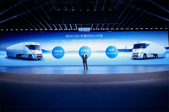 “燈塔”之光照亮新能源重卡市場!福田卡文BEACON用頂級工藝雕琢駕乘空間,以智能配置賦能全場景運營,憑零碳方案踐行綠色使命。它打破豪華與實用的邊界,讓全場景運輸兼具舒適體驗與環保效益,成為高價值物流市場的全新標桿!本次發布會公布燈塔合伙人計劃,誠邀100名重卡意見領袖,作為福田卡文重卡BEACON首批燈塔合伙人新車實地運營6個月,驗證產品頂級性能和品質。未來,福田卡文汽車將致力于構建圍繞客戶需求生長的開放生態,以科技為燈塔,照亮每一公里。