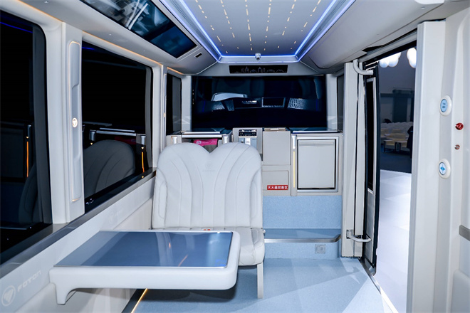 場(chǎng)景適配方面,福田歐輝智能巴士打破傳統(tǒng)商用車(chē)功能邊界,在企業(yè)園區(qū)、景區(qū)、機(jī)場(chǎng)航站樓等封閉場(chǎng)景創(chuàng)新無(wú)駕駛位、無(wú)方向盤(pán)布局,無(wú)需上牌即可快速投入運(yùn)營(yíng);車(chē)內(nèi)會(huì)客廳式設(shè)計(jì),完美適配商務(wù)接待、通勤洽談等需求。