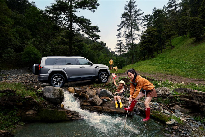 215km純電續航+1365km綜合續航,徹底告別里程焦慮。平時城市通勤一周一充,周末短途旅行不用加油;無人區上千公里穿越,配合7.24L百公里饋電油耗,不用頻繁找油補能,專注享受探險樂趣;戶外露營時秒變“移動充電寶”,6kW外放電功率支持同時開啟電磁爐、電烤爐、投影儀等設備,和車友們在荒野煮火鍋、看電影,實現用電自由。