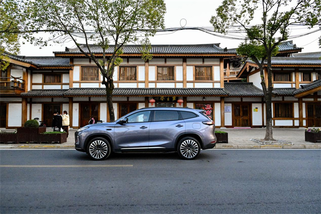 當前方一輛電瓶車突然變道,坐在駕駛位的體驗者還沒來得及反應,車輛已經極其線性地收油、微調方向,防御性駕駛表現比人類的第六感都要略勝一籌,甚至在經過一個沒有明確車道線的鄉鎮小路路口時,它依然能從容應對,不需要高精地圖也能自己看路。這種無圖智駕的底氣,讓用戶可以在復雜的車流中,把腳真正地放在休息區,享受片刻的松弛。