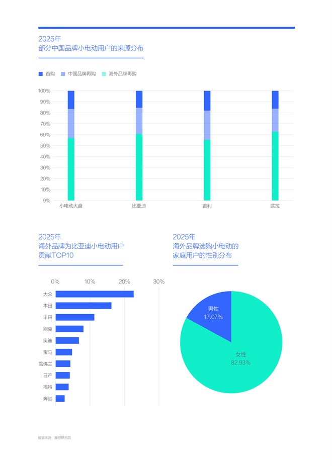 小電動的價值除了薄利多銷,還能吸引大量優(yōu)質(zhì)用戶,2025年小電動來自海外品牌家庭用戶的占比近六成,其中女性超八成