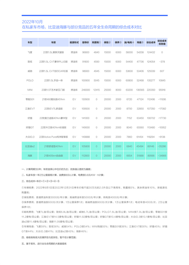 對比小燃油車,小電動的優(yōu)勢有很多,諸如設計、配置、智能等,但小電動之所以能助力中國品牌重構“用戶升級生態(tài)”,并瓦解海外品牌基于燃油小車構建的“用戶升級生態(tài)”,其核心原因在小電動對比燃油小車有巨大的綜合成本優(yōu)勢;