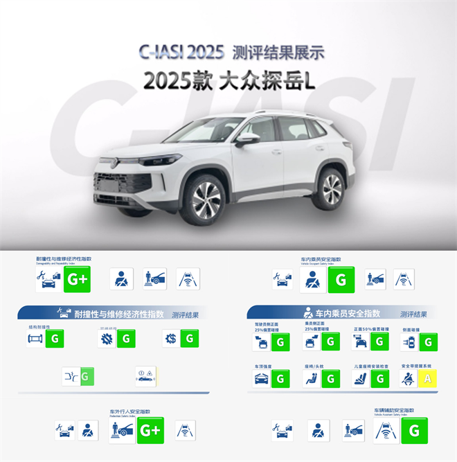 值得一提的是,在“耐撞性與維修經濟性”這一嚴苛評選中,全新探岳L憑借車身結構強度與易維修保養的優勢榮獲G+評級,這也是C-IASI測試自舉辦以來,首次有參選車型在該項目評選中獲評G+。這不僅是對全新探岳L產品安全實力的高度認可,更是一汽-大眾大眾品牌長期恪守“以客戶為中心的長期主義和利他主義”理念收獲的成果。