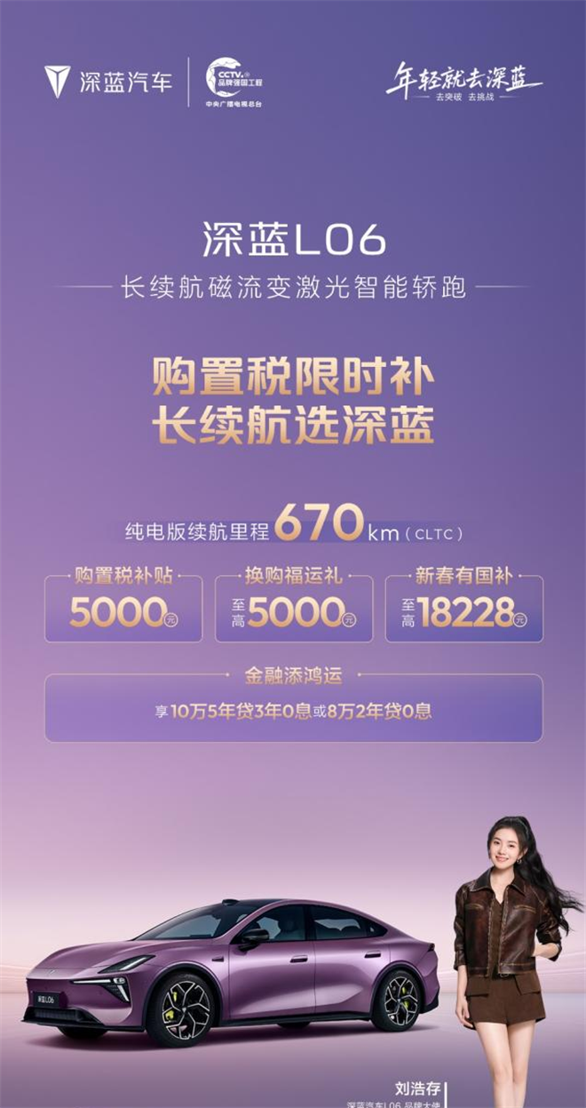 同時(shí),深藍(lán)L06以滿滿誠(chéng)意推出多重購(gòu)車福利,大幅降低智能座駕擁有門檻。消費(fèi)者購(gòu)車即享5000元購(gòu)置稅補(bǔ)貼、至高5000元換購(gòu)福運(yùn)禮、至高18228元新春國(guó)補(bǔ),金融方案可享10萬5年貸3年0息或8萬2年貸0息。年輕消費(fèi)者無需背負(fù)高額資金壓力,就能輕松入手這款顏值與續(xù)航兼?zhèn)涞闹悄苻I跑。