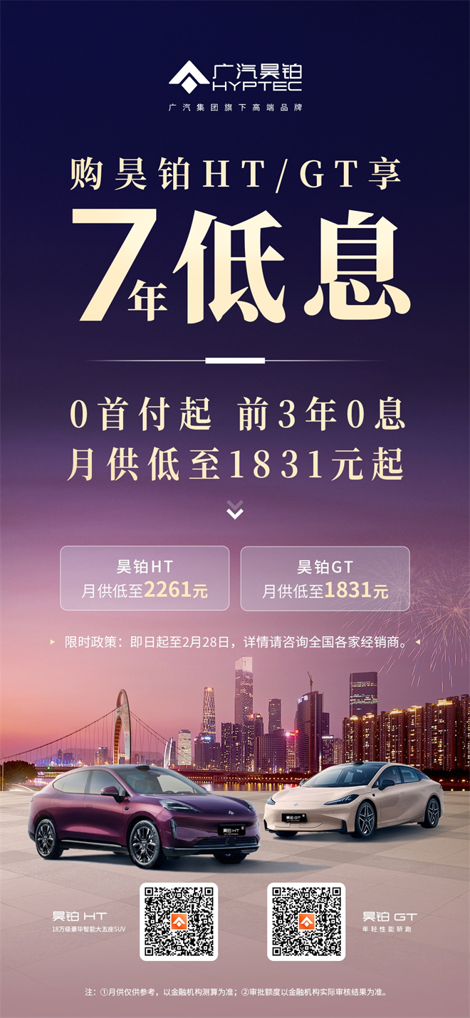 1月27日,廣汽昊鉑針對(duì)旗下昊鉑HT/GT車型推出重磅限時(shí)金融新政,大幅降低用戶擁車門(mén)檻,讓豪華純電出行更觸手可及。