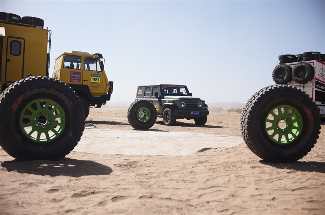在安全層面,其車身采用71%高強(qiáng)度鋼,結(jié)合熱成型鋼門環(huán)結(jié)構(gòu),在遍布巖石與深坑的賽段中保持結(jié)構(gòu)穩(wěn)定。在性能維度,2.0T+8AT動(dòng)力系統(tǒng)與可分時(shí)放大扭矩的四驅(qū)系統(tǒng),使其在沙丘、陡坡等復(fù)雜地形中具備持續(xù)輸出的能力。