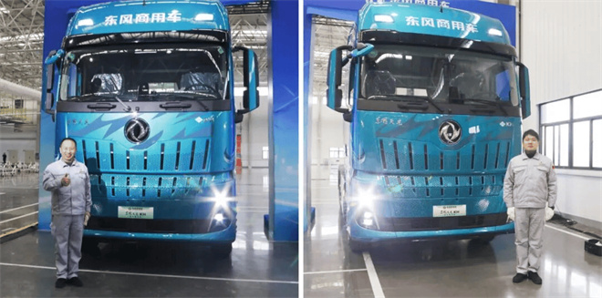 伴隨D600智慧工廠全面投產,基于該智慧制造體系打造的首款代表性商品——東風天龍KH牽引車也正式亮相。