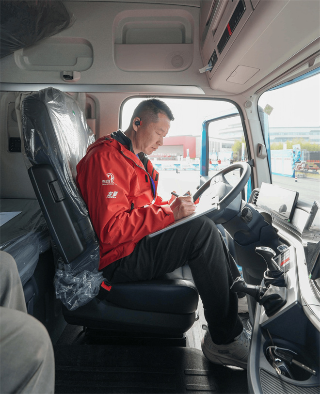 下午的試乘試駕環節,楊林親身體驗了全新一代東風天龍KH牽引車。這款車在研發過程中走訪了全國30多個城市,深度采納了天龍哥們的建議。楊林笑著說:“這款車在很多細節上都進行了調整,只有真正用車的人能體會到。”