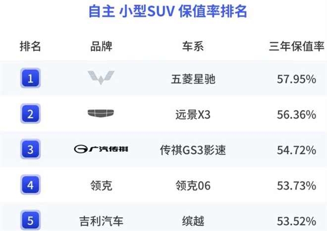 再看保值率這份“價值答卷”,根據精真估最新發布的《2025年中國汽車保值率風云榜》,傳祺GS3影速在小型SUV整體保值率排名中位列第四,自主小型SUV排名第三。影速能在保值率榜上占據高位,證明它在二手車市場的“硬通貨”屬性,買它也相當于未來換車時更有保障。
