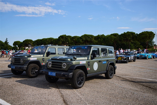 此外,212越野車還將自己置于經典車文化與長途可靠性的審視之下。 亮相意大利Mille Miglia這一經典車長途拉力賽,是其品牌敘事的重要延伸。在這場跨越千余公里的公路巡游中,212展示了其在鋪裝路面上的長途行駛舒適性與可靠性,更以參賽者的身份,成為經典汽車文化場景的一部分。