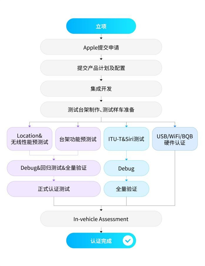憑借多年積累的認證實操經驗,中心可為車企提供CarPlay全流程認證測試服務,助力產品順利通過考核。