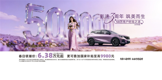 春天短暫,花期易逝,去赴一場(chǎng)真正的春日之約吧。現(xiàn)在購(gòu)買影速享好價(jià),6.38萬(wàn)起即可開(kāi)回家,更可疊加至高9980元的國(guó)家補(bǔ)貼,擁有一款心水座駕就是這么簡(jiǎn)單,即刻開(kāi)上影速,收納一路美好,駛向更廣闊的春天吧!