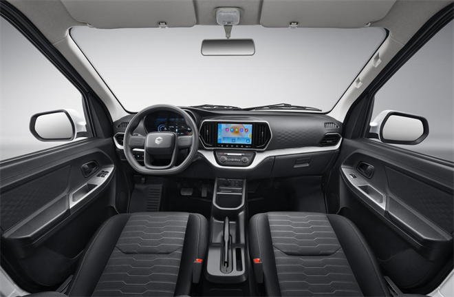內飾也往乘用車靠。環抱式座艙+懷擋設計,操作順手。9寸大屏支持手機互聯和遠程車控,提前開空調、查看車輛狀態,動動手指就行。座椅厚實貼合,長時間開不累,坐的人也舒服。別小看這些細節,車好不好開,直接影響你一天下來的精神狀態和接單意愿。