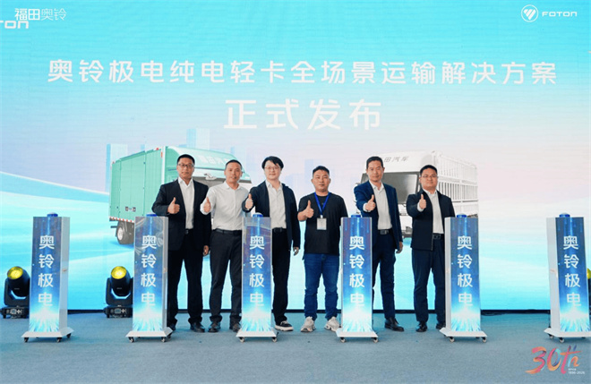 發布儀式上,北汽福田奧鈴事業部營銷副總裁陳巖、北汽福田奧鈴事業部研發副總裁韓磊、北汽福田工程研究總院輕卡技術中心副主任姜松林、寧德時代大客戶總監劉軍標、卓邦物流總經理劉佳共同宣布,奧鈴極電正式登陸洛陽市場,為河南用戶帶來更可靠、更高效的純電運力選擇。
