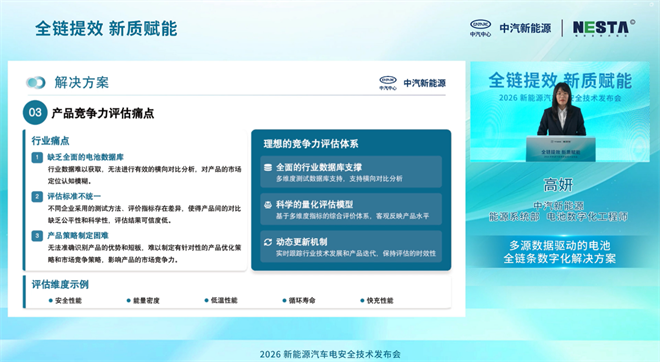 再如動力電池領域,團隊構建了覆蓋電池全鏈條的數字化服務能力,涵蓋熱安全、底部防護、測試對標等關鍵場景。值得注意的是,其發布的“多源數據驅動的電池全鏈條數字化解決方案”,依托海量真實測試數據與算法模型,能夠支持企業從研發到標準制定的正向開發。這意味著,車企可借助第三方專業數據庫,縮短自研周期、降低試錯成本。