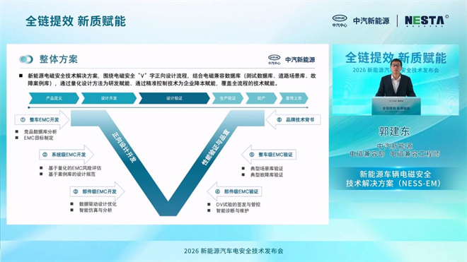以電磁安全為例,新能源汽車電子電氣部件多達數百個,EMC(電磁兼容)問題常導致輔助駕駛誤判、控制器指令異常。中汽新能源基于數十年測試數據,提出“近‘零’輻射健康座艙”開發目標,從目標定義、設計管控到部件拆解,提供全流程支撐。這種“數據驅動+正向設計”的模式,可幫助車企在研發早期規避風險,而非等到樣車測試時才發現問題。