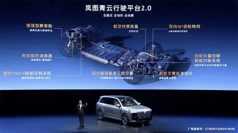 動力系統,新車全系搭載全域800V高壓平臺,支持5C超充,12分鐘即可完成20%-80%極速補能,徹底解決用戶補能痛點。底盤方面,搭載中國第一的三腔空氣懸架+EDC魔毯技術,配合全鋁合金航空級底盤與雙向16度后輪轉向,最小轉彎半徑僅5.4米,兼顧操控穩定性、行駛舒適性與車輛靈活性,應對城市通勤、高速巡航、非鋪裝路面等全場景路況游刃有余。