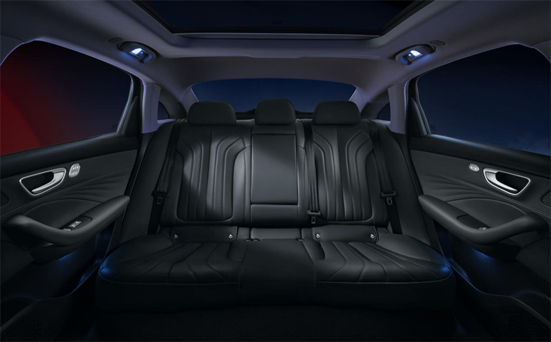 專屬“海岳深藍”車漆采用八層高階立體噴涂工藝,暗光下深邃如玄黑,光線流轉間折射靈動炫藍,光影變幻中盡顯細膩質感。曜夜直瀑式前臉、黑色窗框飾條、曜夜18英寸多輻輪轂、黑色尾燈飾條及尾部標識褪去了鍍鉻材質的張揚,配合近5米級的行政車身,內斂中透出沉穩的紳士氣度。此外,同級獨有的榮耀迎賓光毯在車輛解鎖時緩緩鋪開,配合“ROEWE”呼吸光語LOGO燈、矢量光軌晶鉆日行燈、3D懸浮貫穿尾燈等細節,為用戶帶來專屬的儀式感。