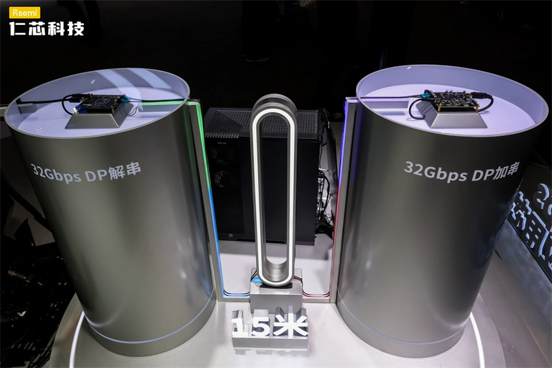 仁芯科技此次展出的32Gbps車載顯示SerDes芯片,正是在這一產(chǎn)業(yè)痛點(diǎn)下應(yīng)運(yùn)而生。32Gbps的傳輸速率,意味著它可以同時(shí)承載多路未壓縮的高清視頻信號(hào),為儀表盤、中控屏、副駕娛樂(lè)屏、后排顯示屏等提供充足的帶寬保障。該芯片支持全速率無(wú)損DP接口,加串端支持4路4K顯示屏,配合菊花鏈功能可驅(qū)動(dòng)多個(gè)顯示屏,此外,解串端集成橋接與功能安全顯示功能,在保障系統(tǒng)可靠性的同時(shí),可有效簡(jiǎn)化整車線束與架構(gòu)設(shè)計(jì)。