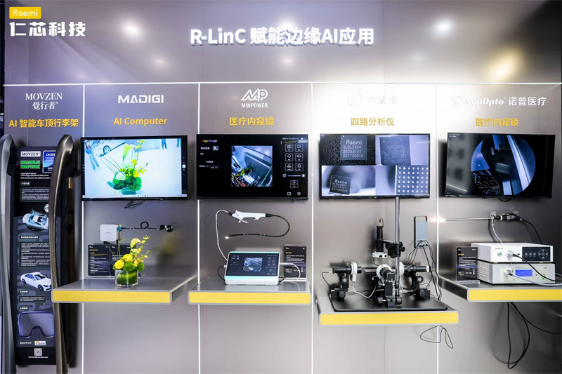 仁芯科技的諸多量產(chǎn)成果,在展臺(tái)上得到了集中展示。從實(shí)車量產(chǎn)展示到性能體驗(yàn)互動(dòng),再到AI邊緣計(jì)算的前沿布局,仁芯科技展臺(tái)以多維度的呈現(xiàn)方式,向業(yè)界完整勾勒出從芯片設(shè)計(jì)到系統(tǒng)集成的全鏈條能力。其中,AI邊緣應(yīng)用展示區(qū)聚焦流媒體后視鏡、醫(yī)療內(nèi)窺鏡等場(chǎng)景,進(jìn)一步印證了高速互聯(lián)技術(shù)在更廣闊領(lǐng)域的應(yīng)用潛力。