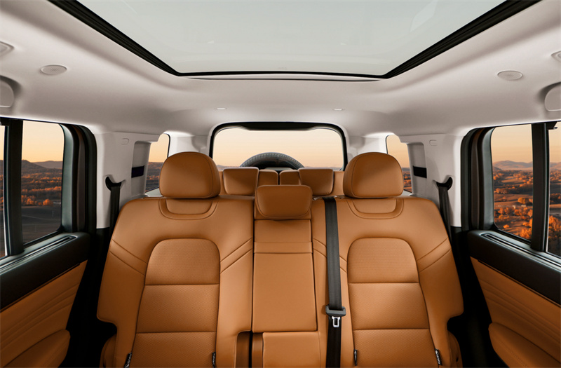 大有格局,百變空間更懂全家出行。 猛龍PLUS七座版延續方盒子硬朗美學,以“方圓之道,棱角之美”塑造沉穩可靠的氣勢感。車身尺寸方面,2850mm超長軸距配合超4.9米車長、超1.9米車高,鑄就真·大塊頭的體量感。空間布局上,三排座椅可靈活收放,后兩排純平放倒后秒變雙人大床,后備廂容積從59L可擴展至1549L,真正實現“N種躺平模式,從容裝下三代同堂的出行所需與全家人的詩與遠方。