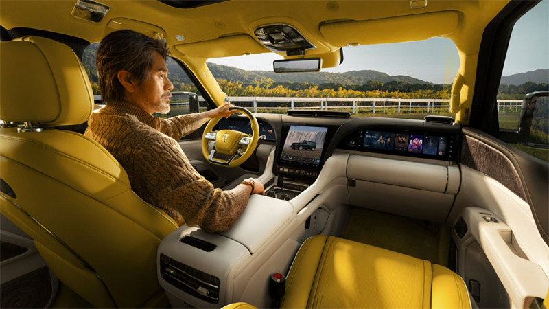 向外溫潤如玉,向內則心懷山河。U8L鼎藏版新增全新內飾配色“鳴沙金”,明亮的黃白拼色,宛如日出時敦煌鳴沙山和月牙泉的碰撞。座椅特別定制了山紋刺繡座椅,取形于“絲綢之路的生命線”——祁連山脈的輪廓,融入刺繡工藝書法筆墨意蘊。配合座艙前部飛流瀑布曲面屏設計,構筑出“前有江河奔涌,后有群山倚靠”的遼闊氣勢。