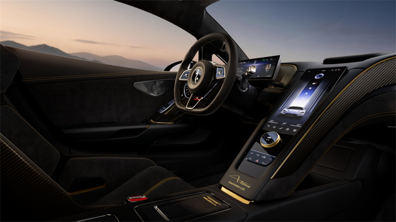 “破曉時刻”車身漆面中融入了微米級超細金粉,經多層清漆層層鎖固,不同光線下,漆面會完美復刻朝陽穿透云層的流光溢彩。啞光金部分使用了中國傳統非遺大漆的打磨工藝,將東方獨有的溫潤質感,刻入每一寸型面。非遺工藝承載著中國人對頂級審美、極致細節的追求,深耕非遺不是為了簡單的設計元素堆砌,而是尋找東方審美技藝與全球30位頂尖藏家的價值共鳴。