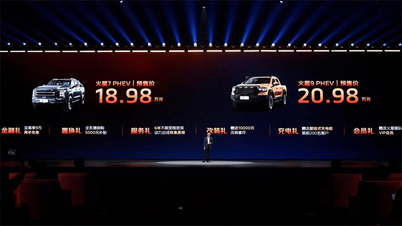 火星PHEV現已正式開啟全國預售,其中火星7 PHEV預售價18.98萬元、火星9 PHEV預售價20.98萬元。火星PHEV為用戶傾情奉上六重尊享禮遇:金融專享至高9萬元兩年免息;置換尊享全系增換購5000元補貼;質保暢享6年不限里程質保、動力總成終身質保;改裝樂享價值10000元免費改裝套件;補能安享免費充電樁(限量前200名訂車客戶);會員優享火星艦隊VIP會員專屬權益。火星皮卡以誠意政策與可靠保障,全面覆蓋購車、用車、養車、改裝、服務全周期利益,切實降低用車門檻與使用成本,讓用戶從容駕馭可油可電、有勁又省的全尺寸超級電混皮卡,暢享全場景的高品質出行體驗。
