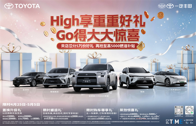 五一長假將至,正是自駕出游、奔赴山海的好時機,不少消費者計劃添置新車,解鎖舒適自在的假日出行。恰逢北京車展火熱啟幕,一汽豐田順勢推出重磅福利,開啟4 月25日-5月5日“High 享重重好禮,Go 得大大驚喜”主題活動,超多限時禮遇輪番登場,助力消費者輕松煥新座駕,安心暢游五一。