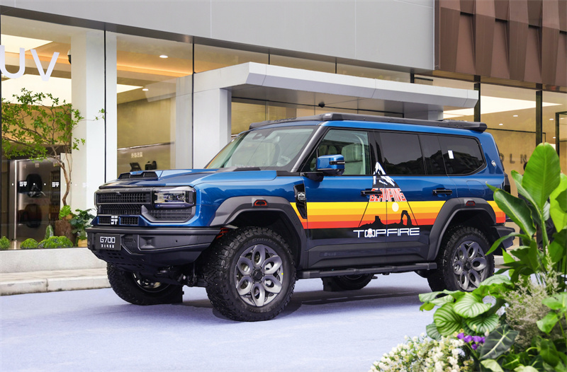 與此同時,多款G700官方定制車型同臺亮相,構成縱橫史上最完整、最強悍的官方改裝陣容。G700頂火鳴鏑版以鳴鏑鋒芒美學為設計核心,搭配拓野強化底盤、定制百路馳KO3、20英寸航空鋁鍛造輪轂、科曼高性能氮氣減震與頂火鳴鏑頂架系統,打造高端越野專屬氣場。