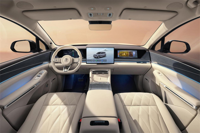 舒適配置上,前排雙零重力座椅與二排雙零壓航空座椅均標(biāo)配通風(fēng)、加熱及10點(diǎn)式按摩。二排靠背最大可舒展至146°,配合70°電動(dòng)腿托,打造極致零壓坐姿。天空之鏡中空夾層天幕面積達(dá)2.53平方米,不僅100%隔絕紫外線,更為頭部多擠出30mm空間,車內(nèi)噪音降低3.9分貝。全車還搭載法國(guó)帝瓦雷7.1.4聲道27揚(yáng)聲器音響系統(tǒng),讓旅途如置身音樂廳。