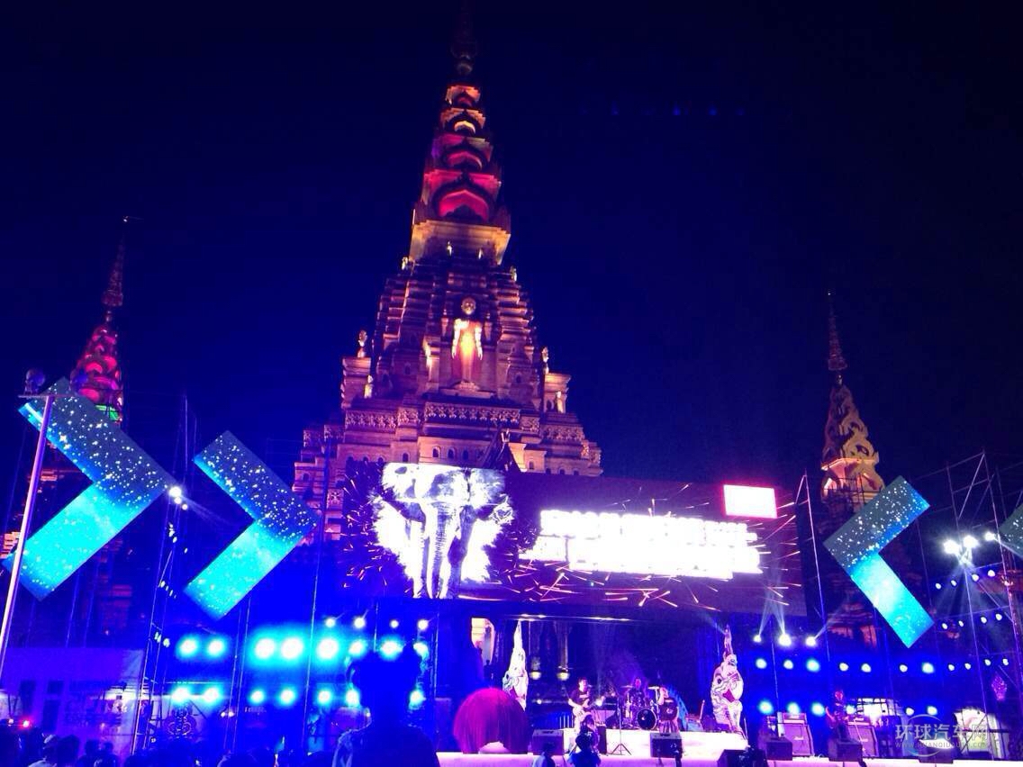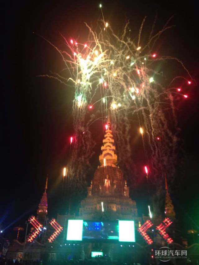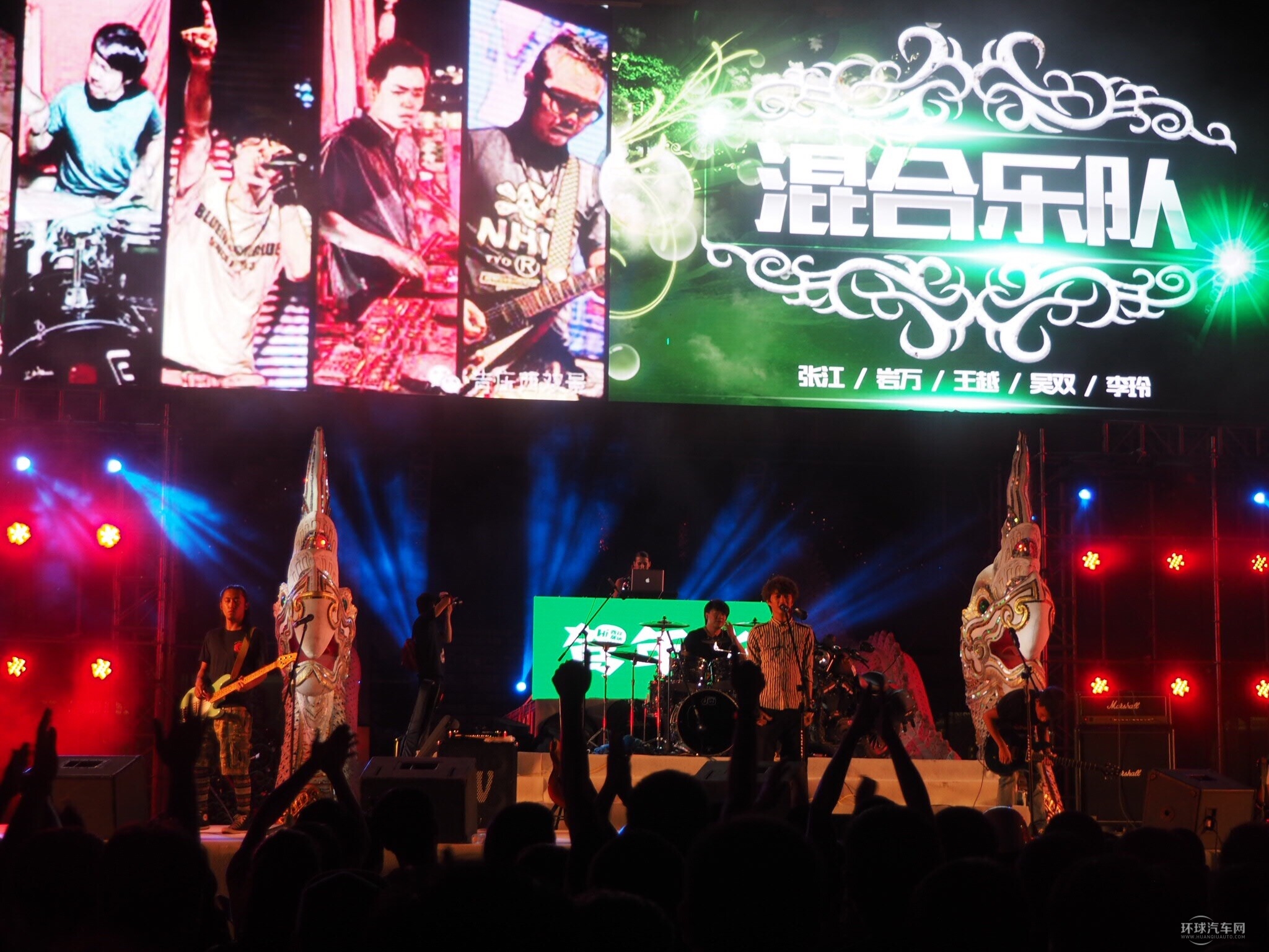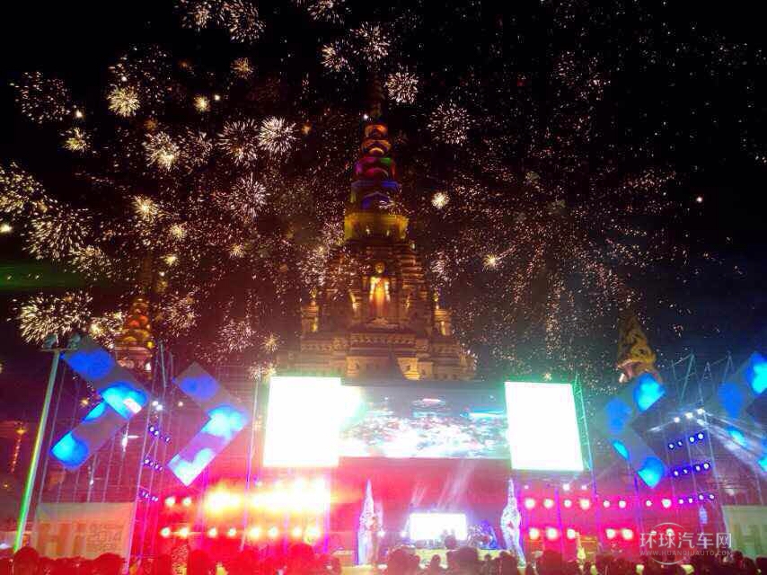 入夜時分,大金塔廣場金碧輝煌、燈火通明。在大金塔前架起的面積近200平米的LED大舞臺成為全場注目的焦點(diǎn),一場通宵汽車音樂晚會真正引爆駕年華盛會的最高潮。