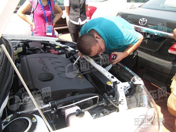 跟隨銷售人員,我們輾轉地來到了一汽豐田4s店的車庫,另我們驚訝的是該4s店將車庫選擇在3樓的樓頂上。這樣的車庫還是小編第一次看到。剛到車庫,提車團友就立刻從包里拿出了一款相機。這也讓小編充滿了好奇。待我們走到了期待已久的花冠面前,提車網友并沒有激動地和新車合影,反而是環視新車一周,大致看過之后,打開了花冠的引擎蓋,仔細查看汽車的各個零件。拿起相機,拍攝發動機的標識以及型號,并咨詢銷售人員該車的生產日期。