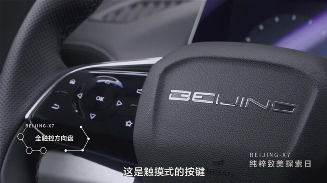 在外形極度迎合當代年輕人后,BEIJING-X7的內飾設計也在一定程度上實現了科技感與實用性的完美融合。包括全觸控方向盤、波譜律動氛圍燈等,營造出更具場景化的燈光效果,讓消費者不止于“駕車”更像是乘坐于一輛穿梭于時空之間的未來機器中。我們可以發現,傳統的儀表盤和中控屏幕被一條狹長的“雙聯屏”替代,它不僅提升了空間的利用率,而且顯示內容更全面、效果更細膩;新車內部“大腦”也使用了BEIJING品牌溫暖陪伴交互體驗系統,設計與技術在此刻相通,為年輕消費者提供一種更新穎的駕享體驗。