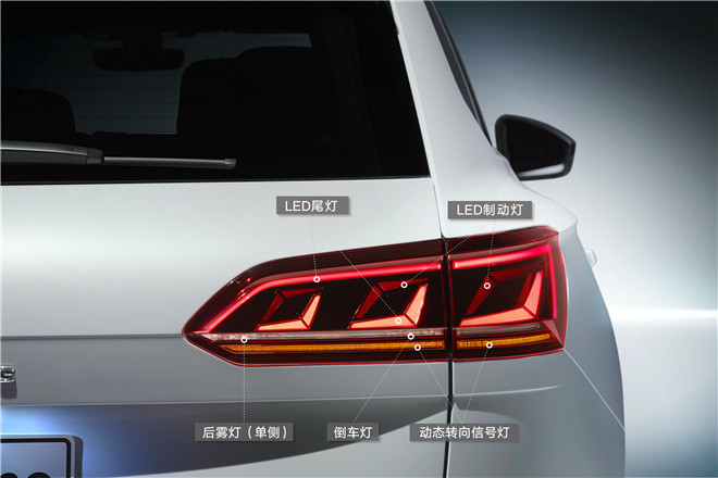 作為360°無(wú)死角的顏值擔(dān)當(dāng),途銳所采用的暗色高級(jí)LED后尾燈同樣是彰顯魅力的點(diǎn)睛之筆。包含LED尾燈、制動(dòng)燈、倒車(chē)燈、后霧燈及動(dòng)態(tài)轉(zhuǎn)向信號(hào)燈的尾燈系統(tǒng)極具辨識(shí)度,其中,尾燈及制動(dòng)燈分別在車(chē)輛行駛和制動(dòng)時(shí)點(diǎn)亮,兩者交相呼應(yīng),似凌厲飛鏢,盡顯動(dòng)感基因,挑動(dòng)駕馭感官。此外,采用動(dòng)態(tài)點(diǎn)亮形式的轉(zhuǎn)向燈在車(chē)輛轉(zhuǎn)向時(shí)猶如跳動(dòng)的音符,提醒后車(chē)駕駛員注意跟車(chē)安全,為途銳的背影增添一騎絕塵的動(dòng)感魄力。