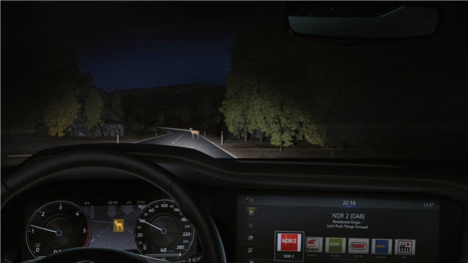 任何行人或動(dòng)物都會(huì)在黑白圖像上以彩色突出顯示。如果夜視系統(tǒng)監(jiān)測(cè)到危險(xiǎn),它會(huì)根據(jù)風(fēng)險(xiǎn)級(jí)別在自定義式全液晶儀表上以橙色或紅色成像警告駕駛者。同時(shí),該系統(tǒng)會(huì)如同精益求精的導(dǎo)演一般“指導(dǎo)”智能矩陣式LED大燈打開(kāi)行人提示燈,通過(guò)短促的閃光提示駕駛員看清行人。不僅如此,制動(dòng)系統(tǒng)和制動(dòng)輔助系統(tǒng)也會(huì)被預(yù)先設(shè)置,以便在監(jiān)測(cè)到潛在危險(xiǎn)時(shí)立即達(dá)到最大制動(dòng)功率,避免潛在的交通危險(xiǎn)。Night Vision夜視系統(tǒng)賦予了途銳敏銳的夜視能力,使其能夠在突發(fā)中依舊從容不迫,隨機(jī)應(yīng)變,確保行人等的安全,讓途銳攻如猛虎,守若泰山,時(shí)刻詮釋精湛“眼”技。