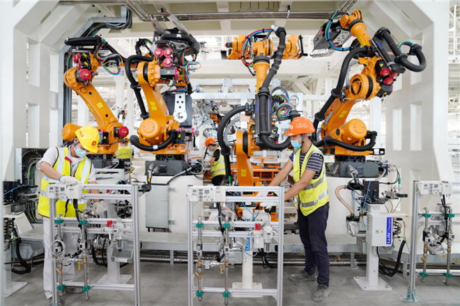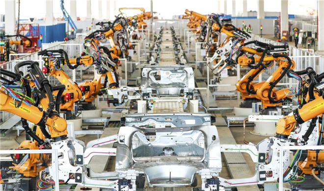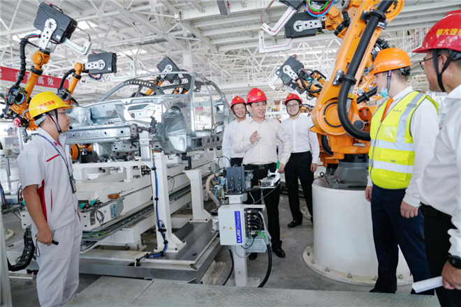 車身車間采用德國庫卡和日本發那科裝備,運用數字化雙胞胎技術,在行業首創生產數據跨車間協同,是世界最先進的高端智能“黑燈工廠”。