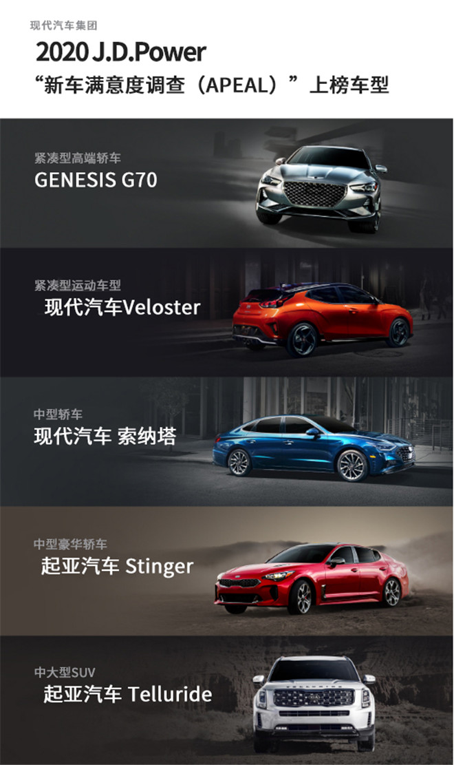現代汽車集團2020J.D.Power“新車滿意度調查(APEAL)”上榜車型